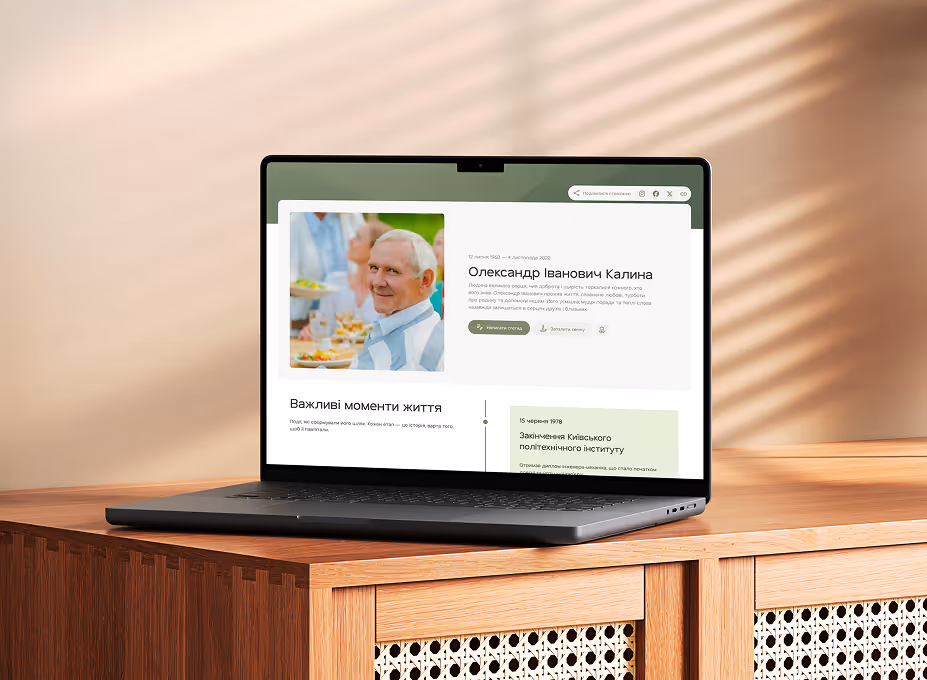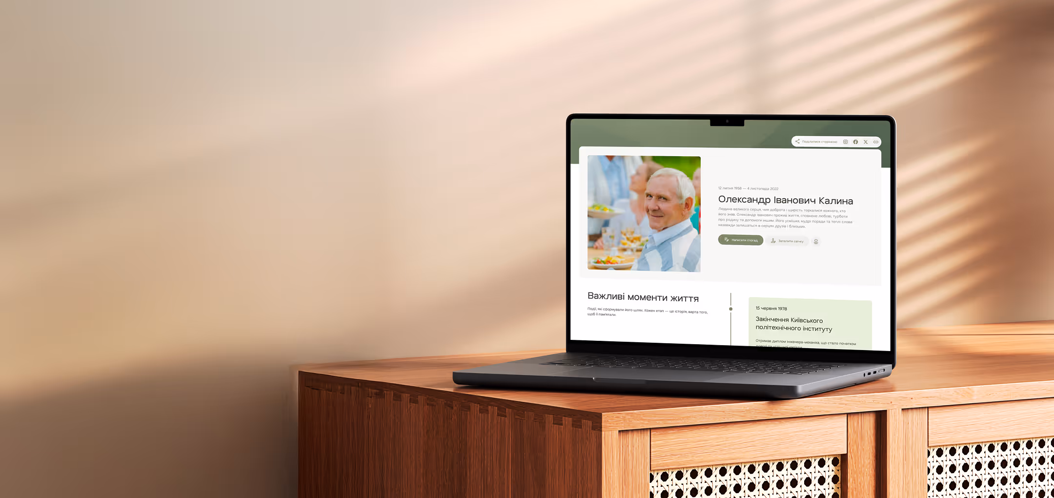 Наша команда дизайнерів і розробників створює індивідуальну меморіальну сторінку, наповнює її контентом і налаштовує всі функції